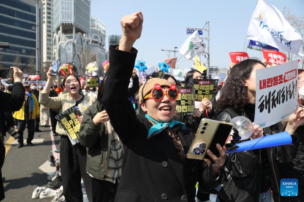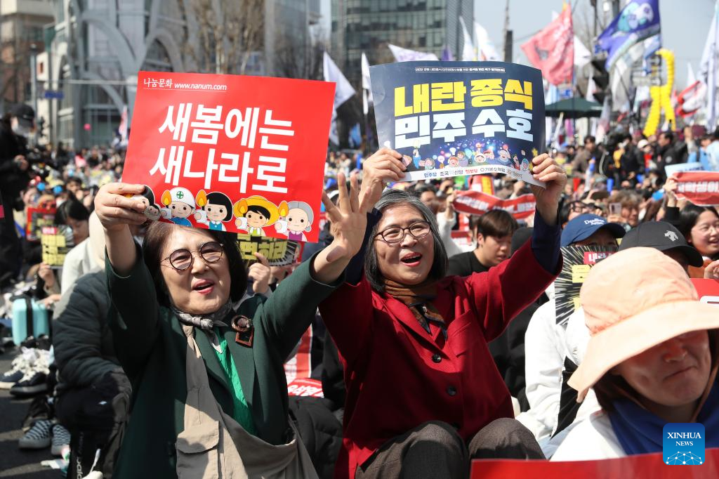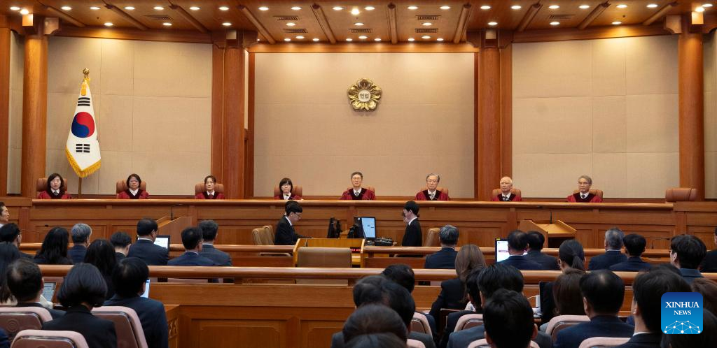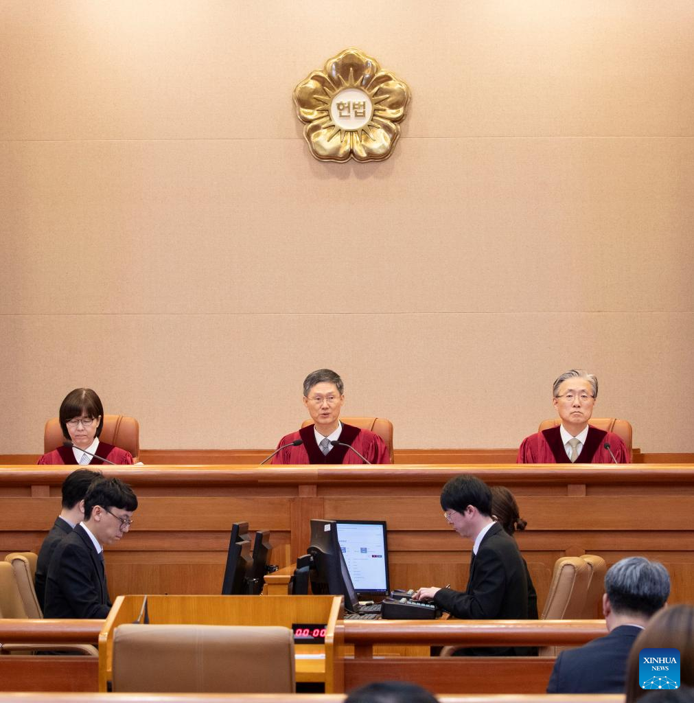 Seul, 4 abr (Xinhua) -- O presidente sul-coreano Yoon Suk-yeol foi afastado do cargo na sexta-feira, quando o tribunal constitucional confirmou uma moção do parlamento para impeachment de Yoon por sua curta imposição da lei marcial em dezembro passado.