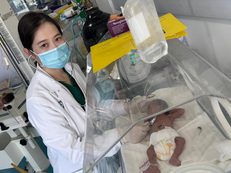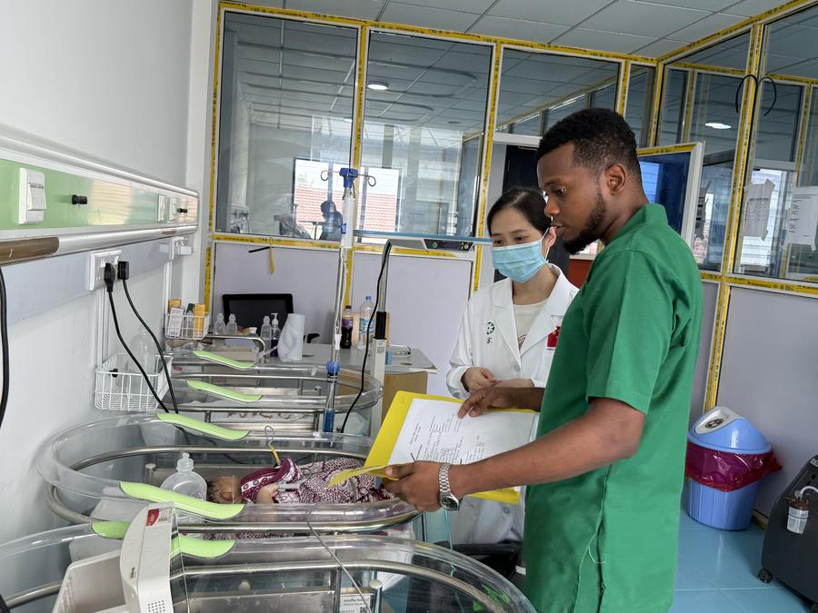 Yu Chunlin, pediatra da 34ª equipe médica chinesa em Zanzibar, parou tudo o que estava fazendo quando recebeu o chamado de emergência. Ao chegar, ela avaliou rapidamente os bebês. Um deles estava desfalecendo, com a frequência cardíaca começando a cair.