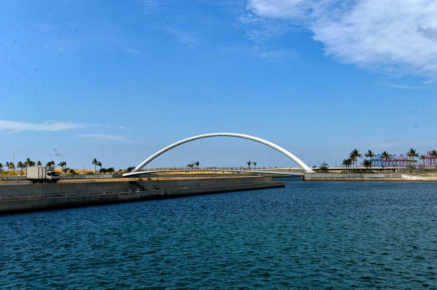 Foto tirada no dia 10 de janeiro de 2025 mostra paisagem da Cidade Portuária de Colombo, Sri Lanka. (Foto por Gayan Sameera/Xinhua)