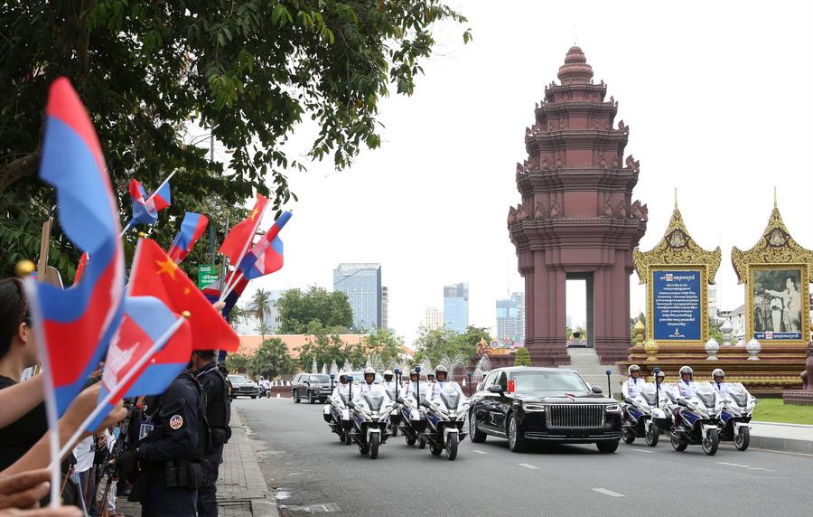 Xi comentou que, nos últimos anos, o Camboja implementou vigorosamente a Estratégia Pentagonal, alcançando rápido crescimento econômico e melhoria contínua dos meios de subsistência da população.