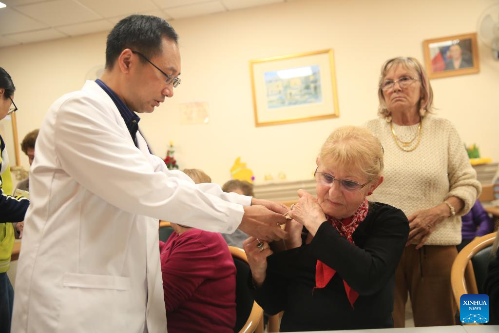 Valeta, 15 abr (Xinhua) -- Os idosos da creche de Santa Venera, no centro de Malta, receberam nesta terça-feira uma visita calorosa e esclarecedora da 20ª equipe médica chinesa em Malta, afiliada ao Centro Regional Mediterrâneo de Medicina Tradicional Chinesa (MRCTCM, na sigla em inglês).
