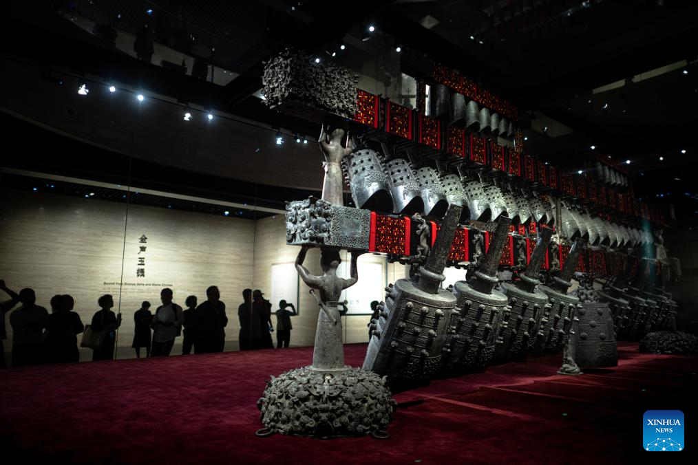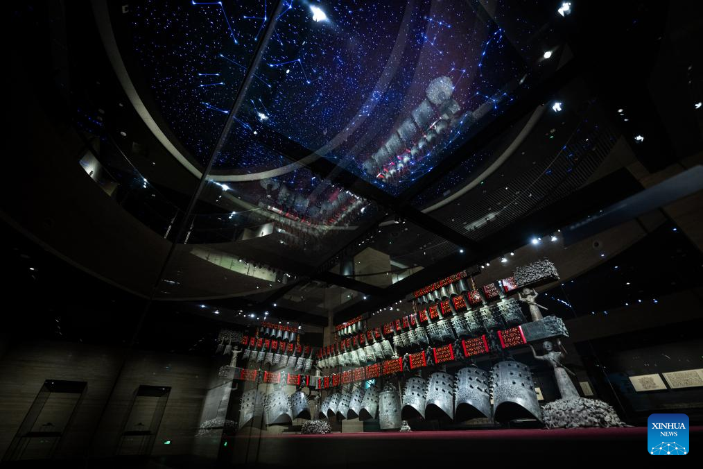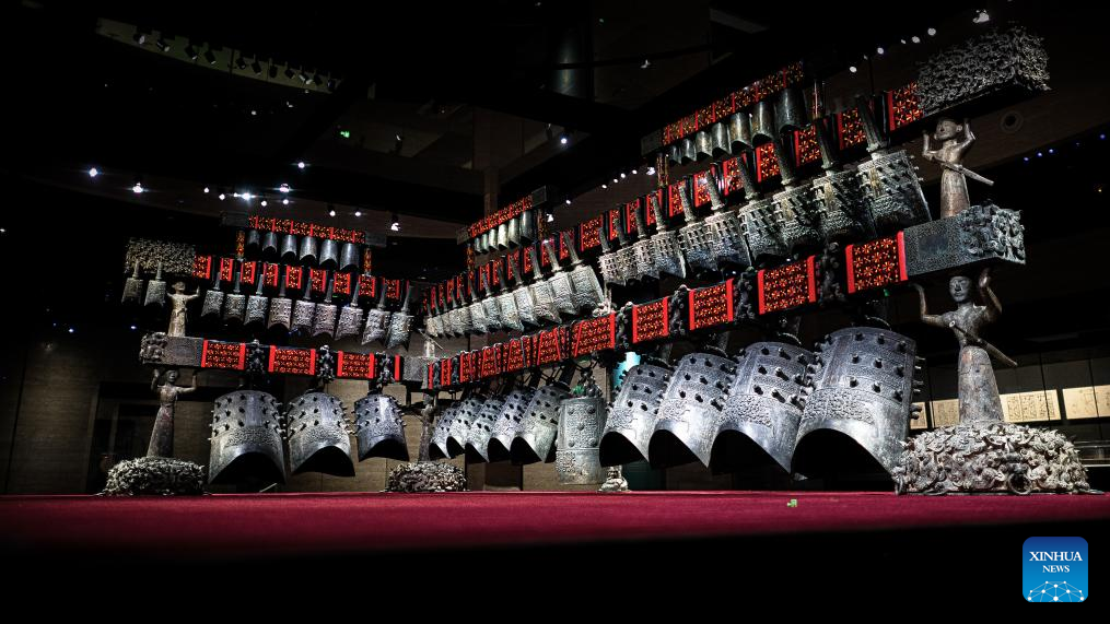 Bianzhong do Marquês Yi de Zeng é retratado no Museu Provincial de Hubei, em Wuhan, província de Hubei, centro da China, no dia 17 de abril de 2025. Três coleções do patrimônio documental enviadas pela China foram inscritas no Registro da Memória do Mundo da UNESCO, anunciou a Organização das Nações Unidas para a Educação, a Ciência e a Cultura (ONU) na quinta-feira.