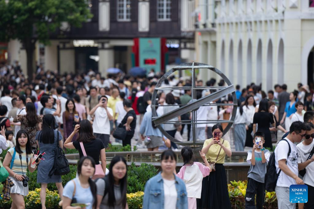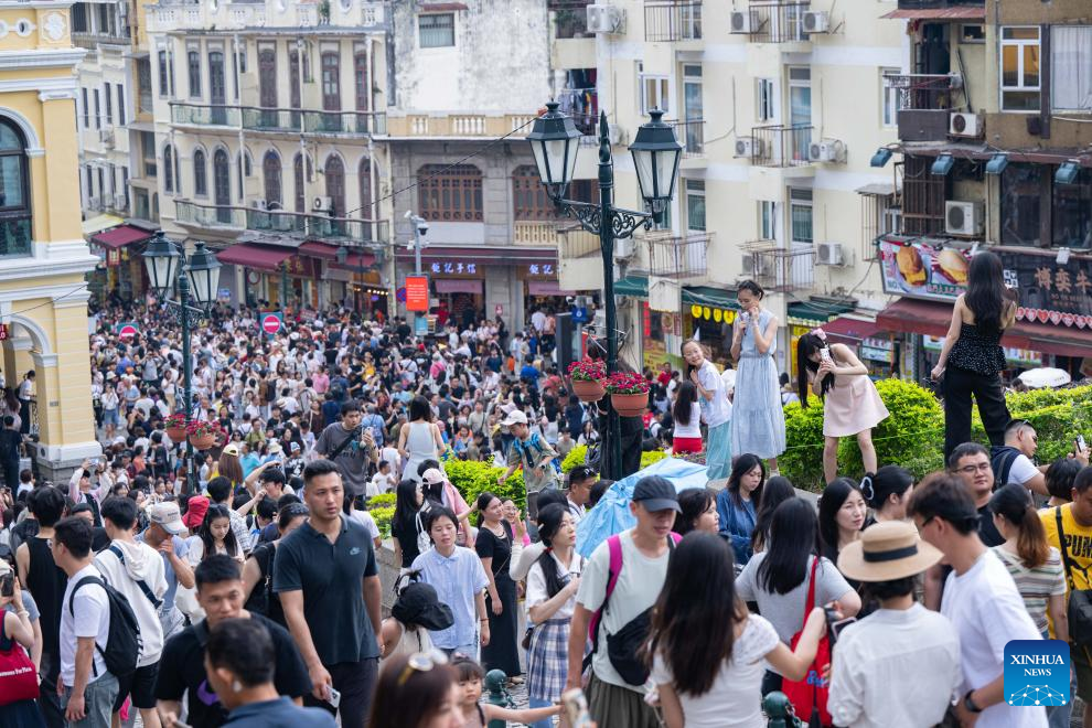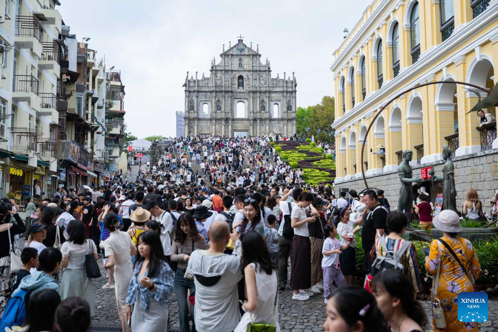 Macau, 4 mai (Xinhua) -- Os três primeiros dias do feriado do Dia do Trabalhador na China registraram um fluxo significativo de visitantes à Região Administrativa Especial de Macau (RAEM), injetando nova vitalidade na indústria do turismo local.