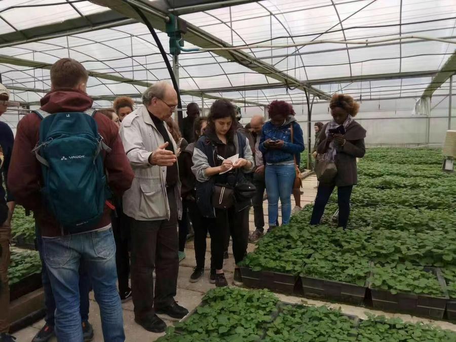 Foto mostra agrônomo belga, François Serneels, (2º, à esquerda) dando aulas em centro de produção de batatas no condado de Wuxi, Chongqing, em 2017. (Xinhua)