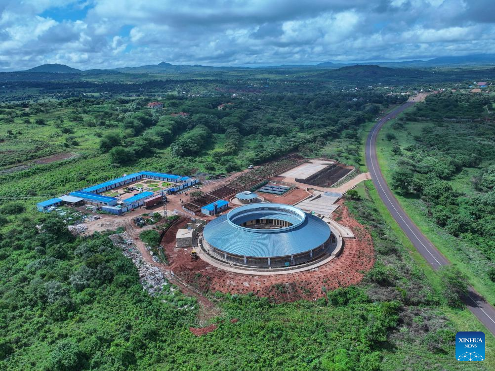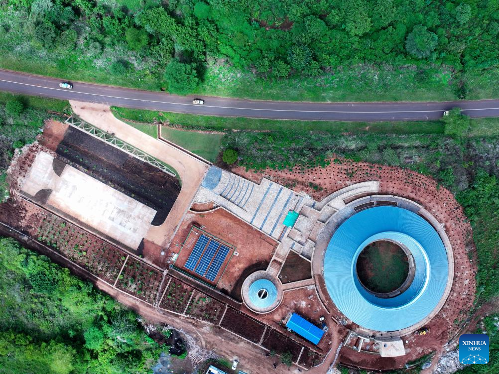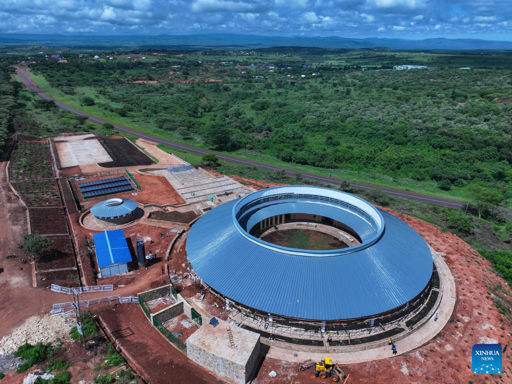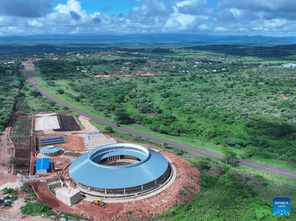 Foto aérea tirada com drone em 26 de abril de 2025 mostra o local de construção de um museu no Geoparque Global da UNESCO (Organização das Nações Unidas para a Educação, a Ciência e a Cultura) de Ngorongoro Lengai, na Região de Arusha, Tanzânia. (Xinhua/Li Yahui)