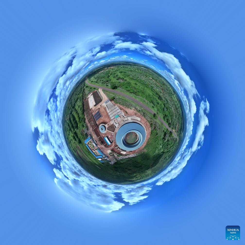 Foto panorâmica tirada com drone em 26 de abril de 2025 mostra o local de construção de um museu no Geoparque Global da UNESCO (Organização das Nações Unidas para a Educação, a Ciência e a Cultura), Ngorongoro Lengai, na região de Arusha, Tanzânia. (Xinhua/Li Yahui)