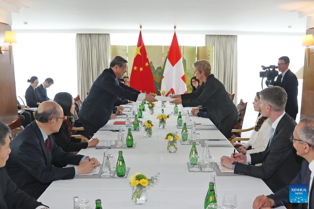 Genebra, 10 mai (Xinhua) -- Líderes seniores da China e da Suíça se comprometeram na sexta-feira a fortalecer a comunicação, defender o livre comércio e acelerar as negociações para atualizar o acordo de livre comércio dos dois países em meio aos desafios globais.