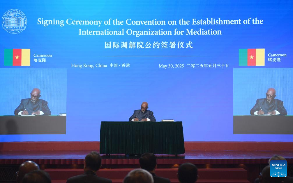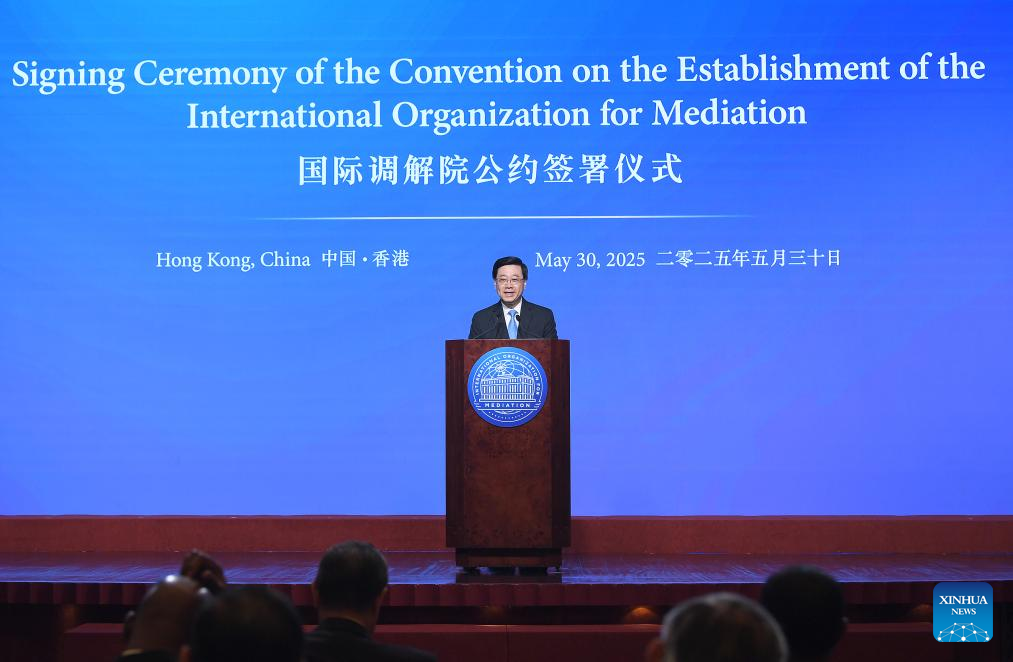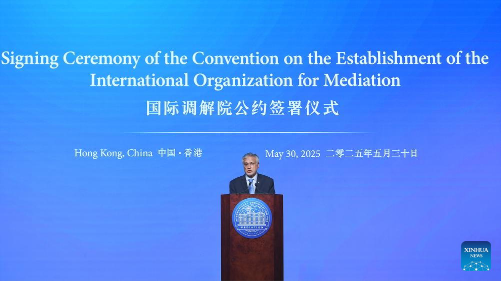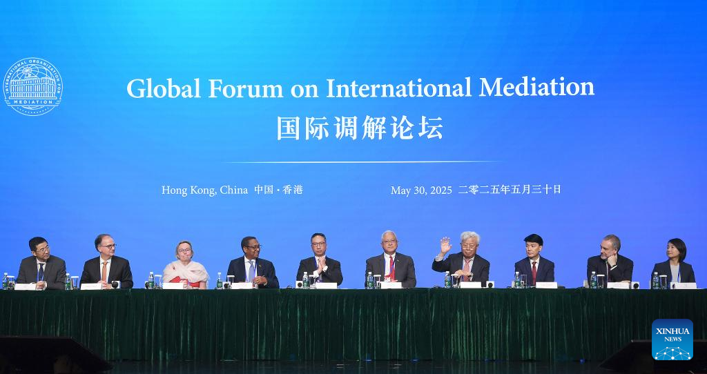 Hong Kong, 31 mai (Xinhua) -- O Fórum Global sobre Mediação Internacional foi realizado em Hong Kong na sexta-feira, após a cerimônia de assinatura da Convenção sobre o Estabelecimento da Organização Internacional para Mediação (IMOed, em inglês).