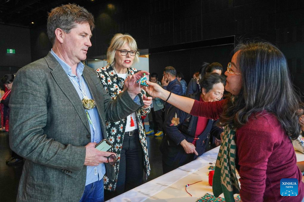 Convidados conhecem sachês chineses em evento comemorativo do tradicional Festival do Barco do Dragão Chinês em Christchurch, Nova Zelândia, no dia 30 de maio de 2025. Comunidades em toda a Nova Zelândia comemoram o tradicional Festival do Barco do Dragão Chinês no fim de semana com celebrações animadas em Christchurch e Auckland, refletindo a herança cultural duradoura desse festival ancestral. (Foto por Chen Siyumneg/Xinhua)