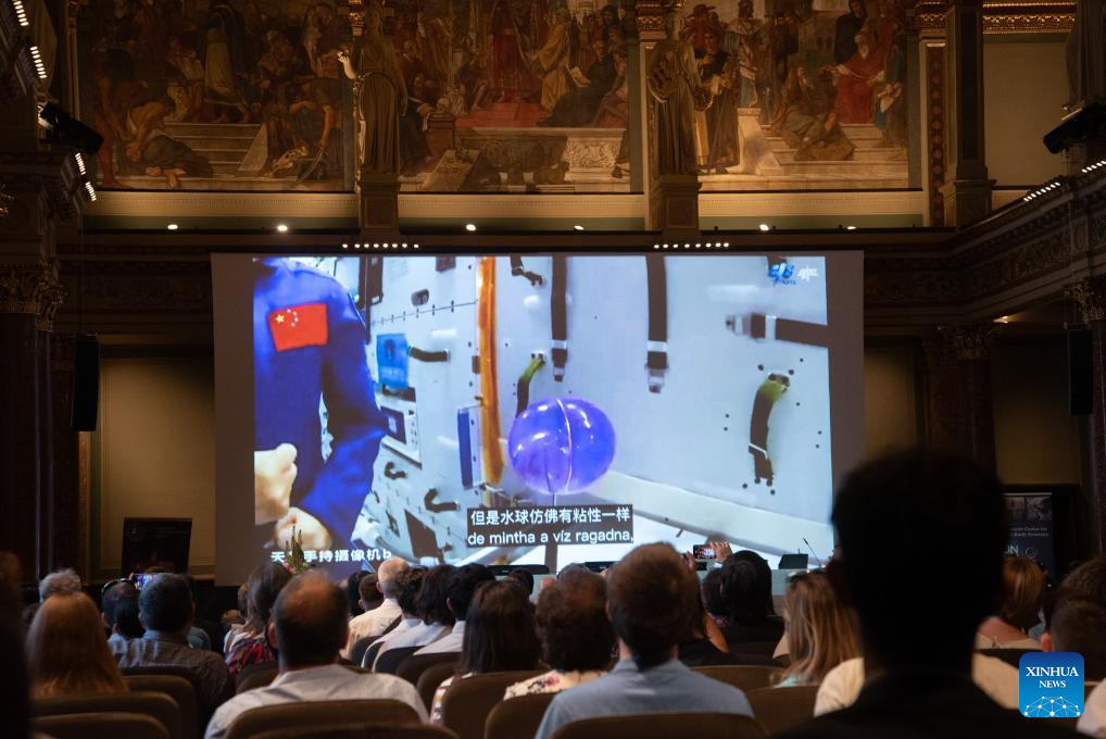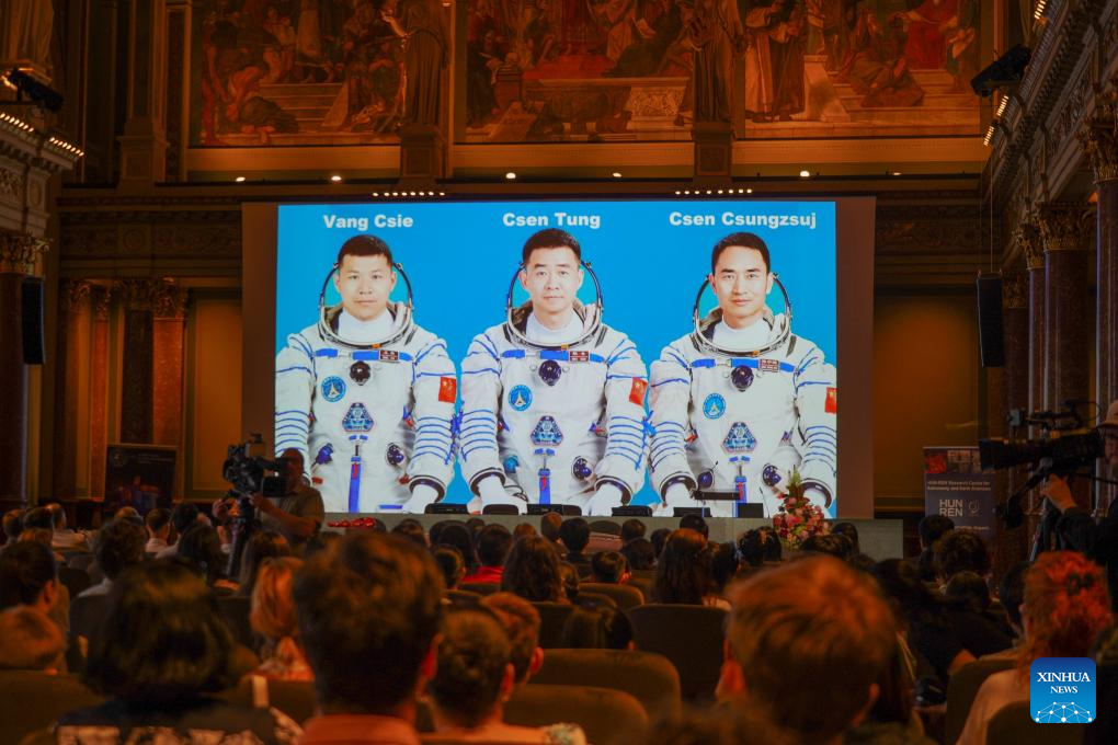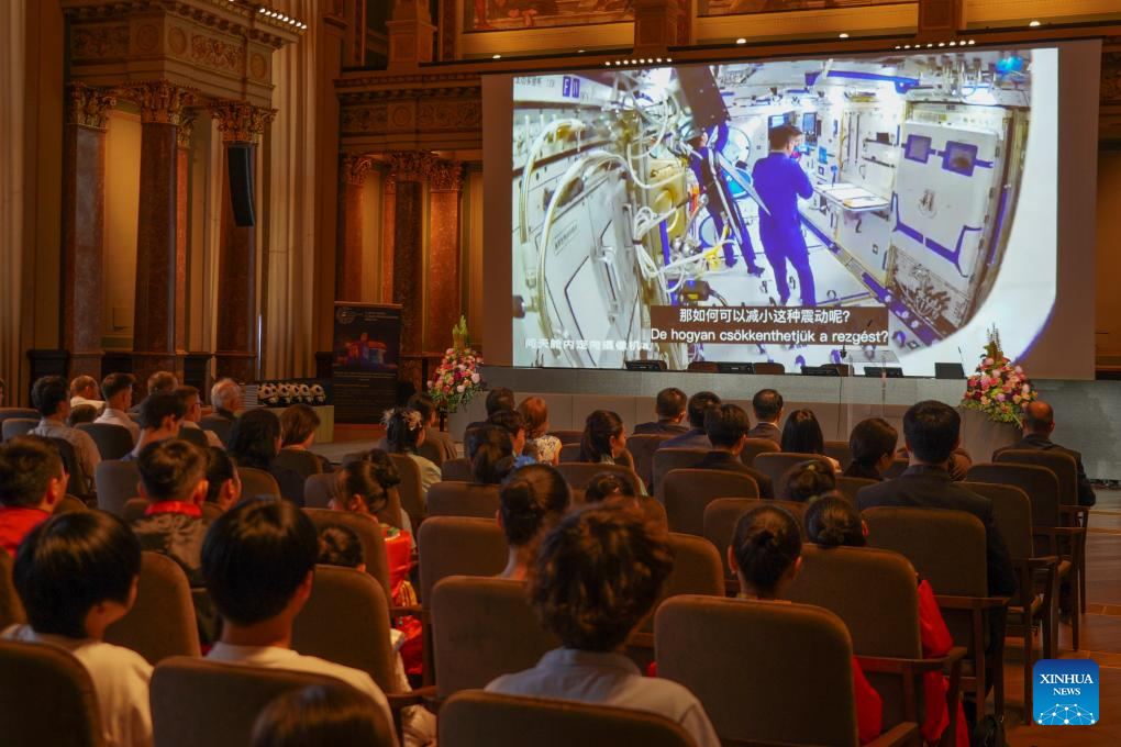 Budapeste, 6 jun (Xinhua) -- Mais de 300 estudantes, cientistas e autoridades governamentais se reuniram na sexta-feira na Academia Húngara de Ciências para uma sessão especial de perguntas e respostas sobre ciência espacial com astronautas chineses a bordo da estação espacial Tiangong.