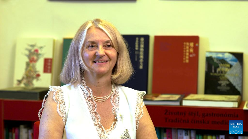Olga Doktorova, diretora da Biblioteca Científica Estatal de Banska Bystrica, é entrevistada em Banska Bystrica, Eslováquia, no dia 5 de junho de 2025. (Foto por Peter Lahky/Xinhua)