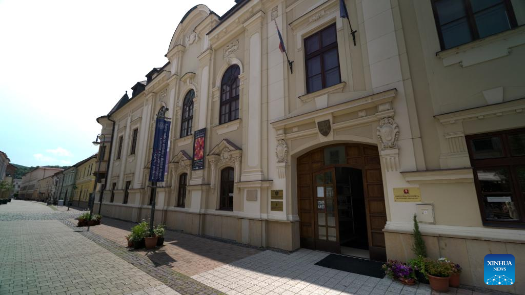 Foto tirada no dia 5 de junho de 2025 mostra vista frontal da Biblioteca Científica Estatal em Banska Bystrica, Eslováquia. (Foto por Peter Lahky/Xinhua)