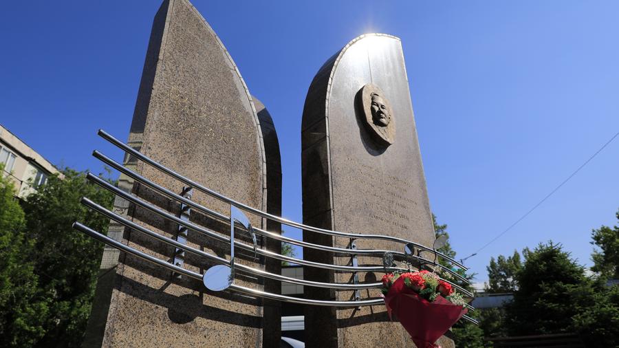Foto tirada em 22 de maio de 2021 mostra monumento erguido em homenagem ao compositor chinês Xian Xinghai em Almaty, Cazaquistão. (Foto por Kalizhan Ospanov/Xinhua)