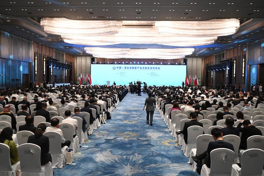 Foto tirada em 23 de maio de 2024 mostra uma cena durante Fórum China-Conselho de Cooperação do Golfo (CCG) sobre Cooperação Industrial e de Investimentos, em Xiamen, Província de Fujian, no sudeste da China. (Xinhua/Zhou Yi)