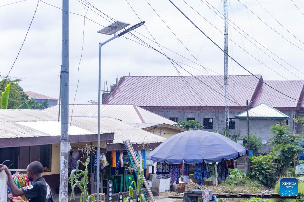 Foto tirada em 17 de junho de 2025 mostra iluminação pública solar em Buea, Região Sudoeste de Camarões. (Foto por Muleng Timngum/Xinhua)