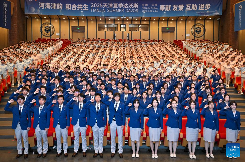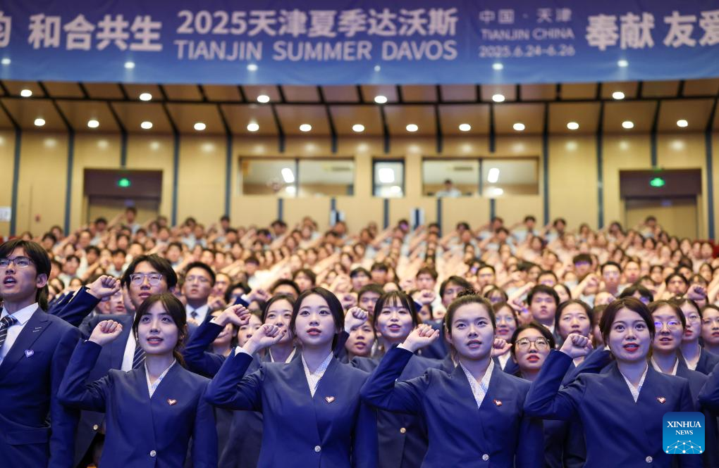 Voluntários do Fórum Davos de Verão 2025 prestam juramento em Tianjin -Xinhua