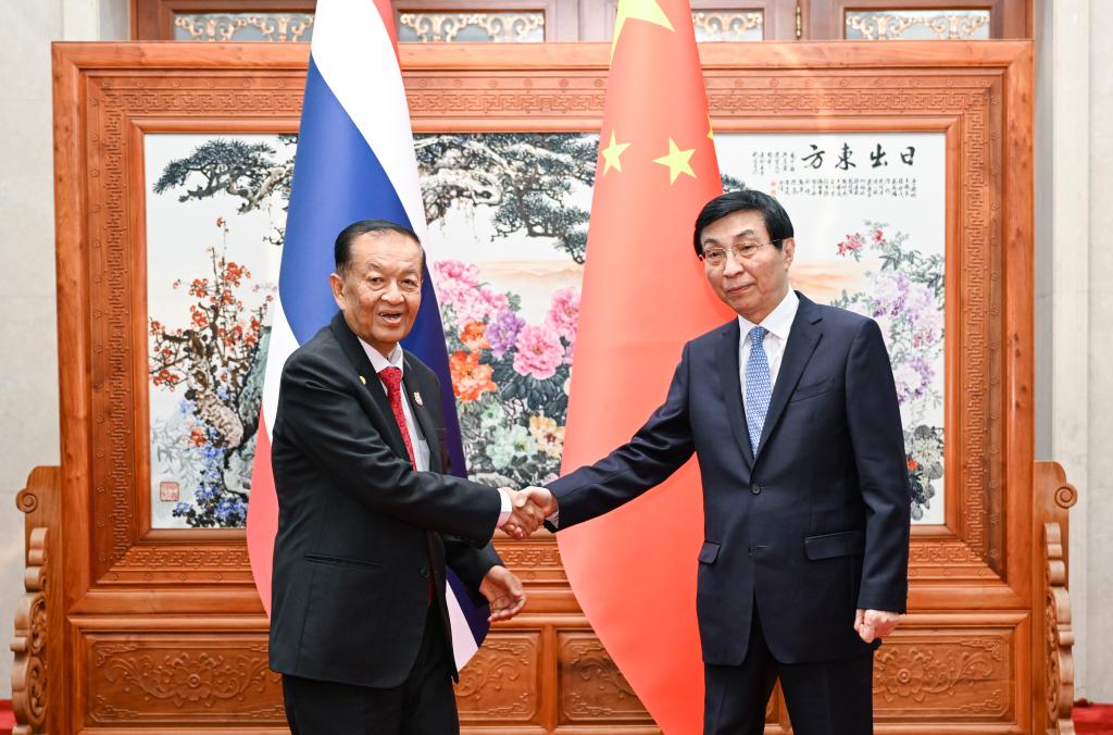 Wang, presidente do Comitê Nacional da Conferência Consultiva Política do Povo Chinês (CCPPC), disse que, em fevereiro deste ano, o presidente chinês Xi Jinping e a primeira-ministra tailandesa Paetongtarn Shinawatra chegaram a um importante consenso sobre o aprofundamento da construção da comunidade China-Tailândia com um futuro compartilhado, definindo ainda mais a direção para o desenvolvimento das relações bilaterais.
