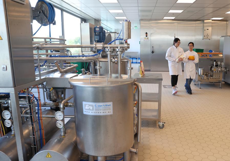 Funcionários trabalham no Centro de Inovação Europeu do Grupo Yili da China, na Universidade de Wageningen, em Wageningen, Holanda, no dia 19 de junho de 2025. (Xinhua/Zhao Dingzhe)