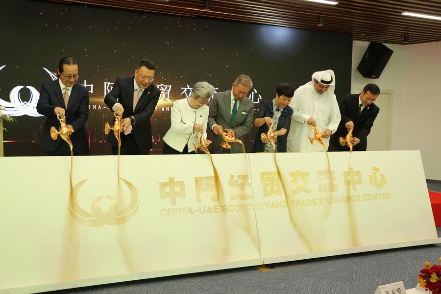 Convidados participam da cerimônia de inauguração do Centro de Intercâmbio Econômico e Comercial China-Emirados Árabes Unidos (EAU), no Pavilhão da China da Dubai Expo City, em Dubai, Emirados Árabes Unidos (EAU), em 6 de dezembro de 2024. (Xinhua/Wen Xinnian)