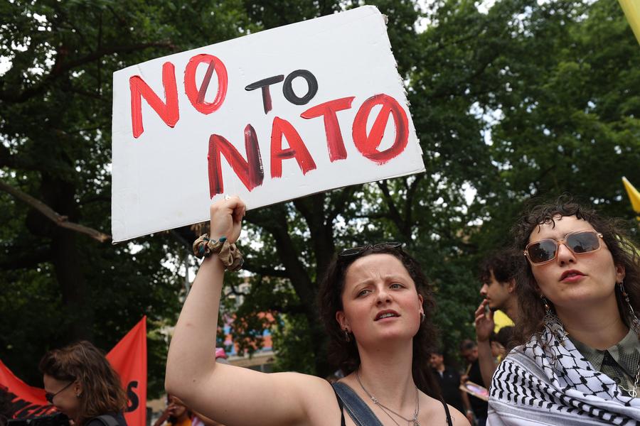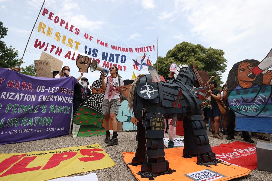 Ela enfatizou o propósito mais amplo do protesto, dizendo: "É muito importante estarmos aqui hoje para realmente destacar que os EUA estão usando a OTAN como uma ferramenta para promover sua agressão em diferentes partes do mundo, e queremos nos unir ao povo que luta contra o imperialismo."