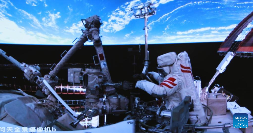 Chen Dong e Chen Zhongrui, encarregados de conduzir operações de caminhada espacial, concluíram a instalação de um dispositivo de proteção contra detritos e a inspeção e manutenção de equipamentos externos, de acordo com a CMSA.