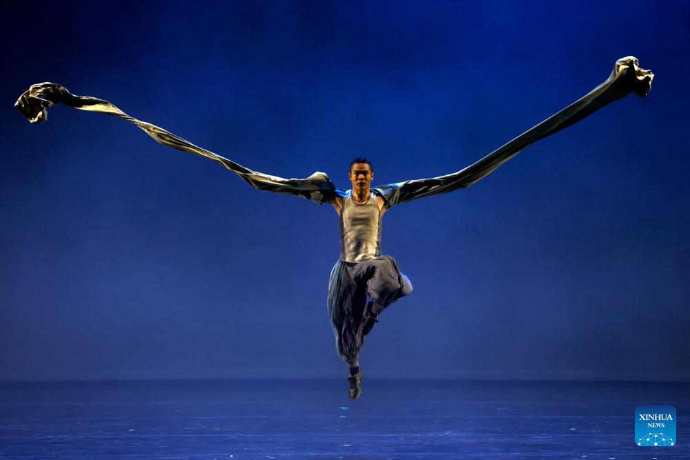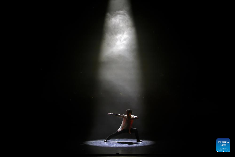 Integrante do Grupo de Artes Marciais Longyun em apresentação especial de dança dramática de kung fu chinês "11 Guerreiros" na Ópera Nacional de Bucareste, em comemoração ao Dia Internacional do Diálogo entre Civilizações em Bucareste, Romênia, no dia 28 de junho de 2025. Organizado pela Embaixada da China na Romênia, pelo Centro Cultural Chinês de Bucareste e pela Casa Romênia-China, o evento atraiu mais de 900 participantes, incluindo diplomatas, autoridades culturais e figuras públicas. A apresentação foi feita pelo Grupo de Artes Marciais Longyun, fundado pelo renomado astro do cinema chinês Jackie Chan. Combinando artes marciais, dança moderna e multimídia, a produção traça a evolução do kung fu chinês, desde suas origens no combate até sua profundidade filosófica e espiritual. (Foto por Cristian Cristel/Xinhua)