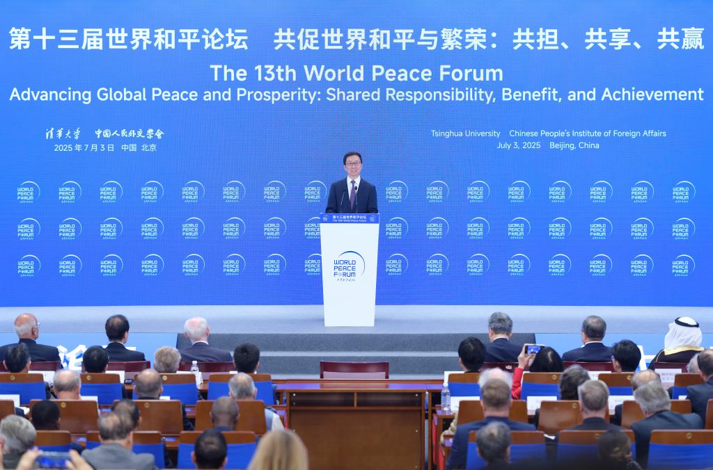Beijing, 3 jul (Xinhua) -- O vice-presidente chinês, Han Zheng, discursou na cerimônia de abertura do 13º Fórum Mundial da Paz em Beijing nesta quinta-feira, pedindo a salvaguarda conjunta da equidade e justiça internacionais e a melhoria do sistema de governança global.