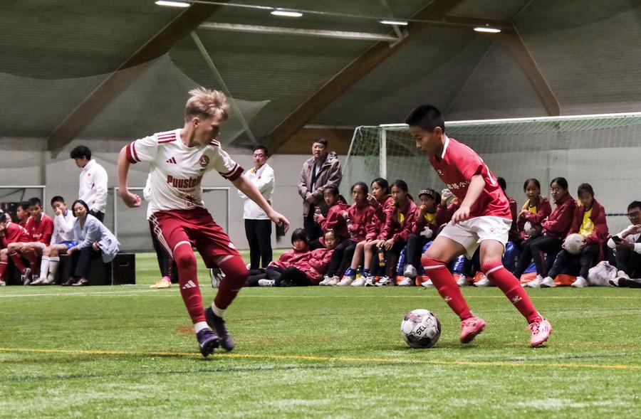 Duas partidas empolgantes aconteciam. Duas equipes de 12 anos, uma feminina e uma masculina de Chengdu, província de Sichuan, sudoeste da China, enfrentaram seus pares finlandeses em jogos amistosos.