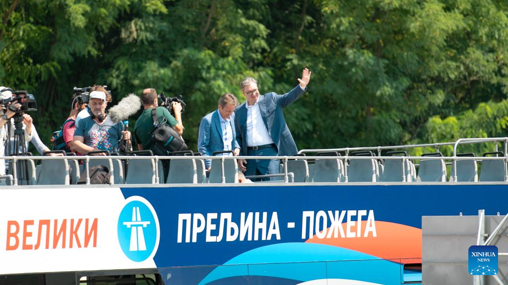 Lucani, Sérvia, 5 jul (Xinhua) -- O presidente sérvio, Aleksandar Vucic, inaugurou no sábado o trecho final da rodovia E-763 "Milos Veliki", entre Pakovrace e Pozega, completando todo o trecho Preljina-Pozega, com 30,9 km de extensão.