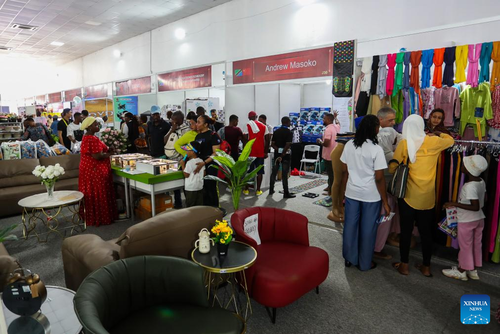 Pessoas visitam estandes no Pavilhão da China na 49ª edição da Feira Internacional de Comércio de Dar es Salã (DITF, na sigla em inglês), em Dar es Salã, Tanzânia, no dia 6 de julho de 2025. A 49ª edição da Feira Internacional de Comércio de Dar es Salã (DITF) foi um marco significativo no domingo com a celebração do Dia da China, destacando a crescente parceria econômica e cultural entre China e Tanzânia, disse uma autoridade tanzaniana. (Xinhua/Emmanuel Herman)
