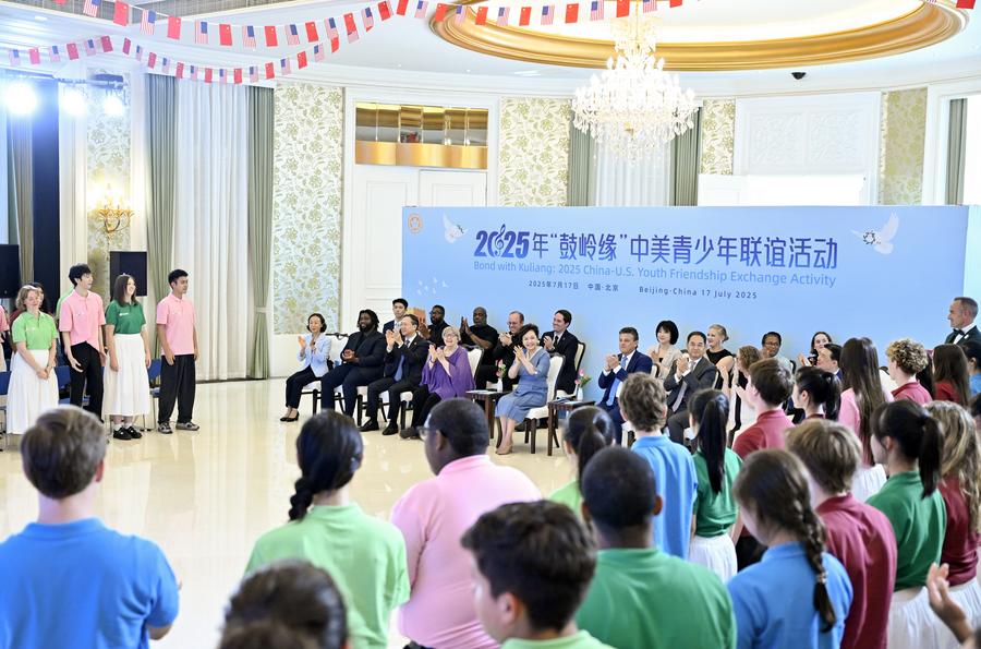 Beijing, 17 jul (Xinhua) -- Peng Liyuan, esposa do presidente chinês, Xi Jinping, participou nesta quinta-feira da Conexão com Kuliang: Evento de Amizade entre Jovens China-EUA 2025 e fez um discurso na Associação do Povo Chinês para a Amizade com Países Estrangeiros.