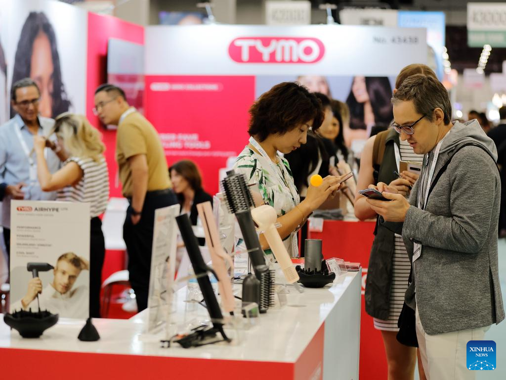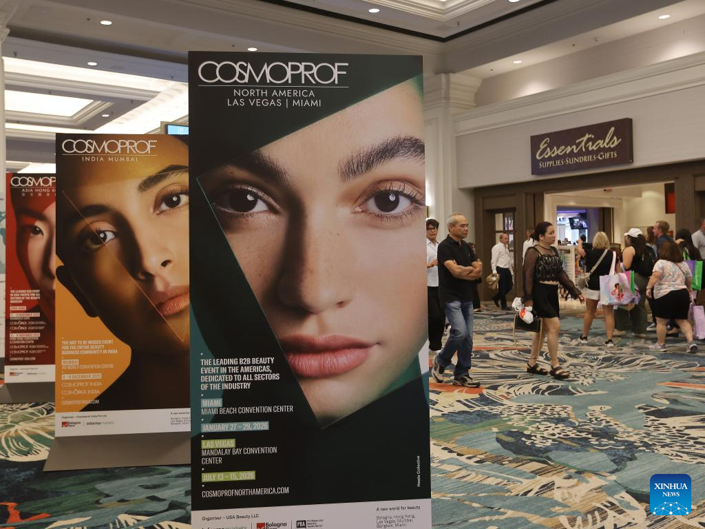 O evento de três dias no Centro de Convenções Mandalay Bay, em Las Vegas, reuniu participantes do mundo todo. Por trás das brilhantes inovações em cuidados com a pele e em tecnologias cosméticas, as incertezas da política comercial dominaram as discussões entre os líderes do setor. (Foto por Qiu Chen/Xinhua)