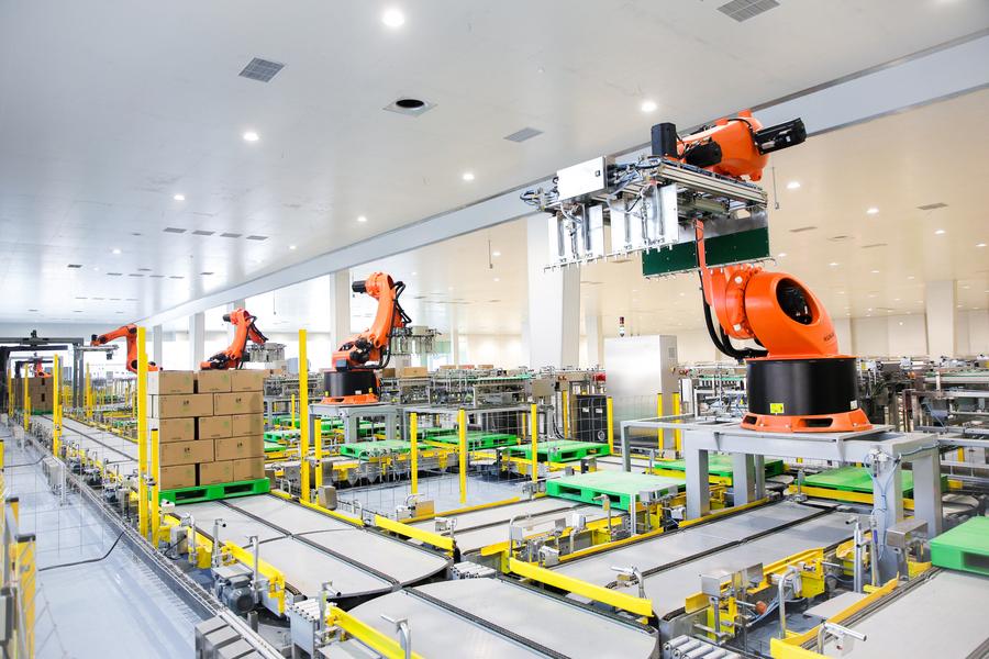Foto de arquivo sem data mostra linha de produção inteligente e digitalizada no Vale de Saúde Moderno e Inteligente da Yili, no Tumd Left Banner, em Hohhot, Região Autônoma da Mongólia Interior, norte da China. (Grupo Yili/Divulgação via Xinhua)