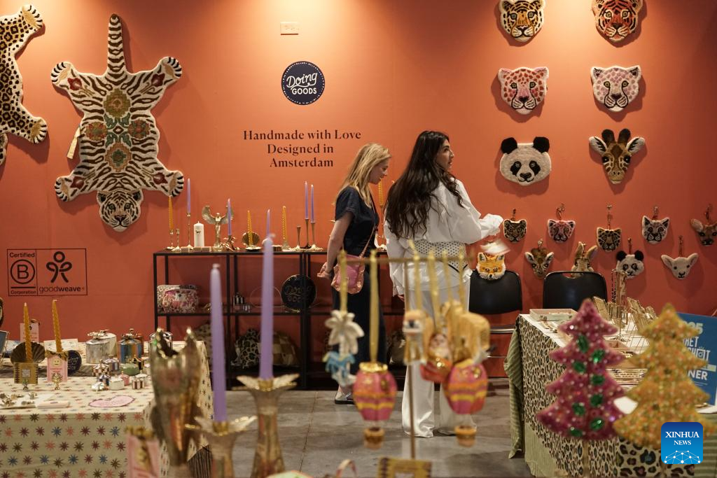 Visitantes no estande da marca holandesa de utensílios domésticos Doing Goods na feira de verão Las Vegas Market 2025 em Las Vegas, Nevada, Estados Unidos, em 29 de julho de 2025. (Foto por Zeng Hui/Xinhua)