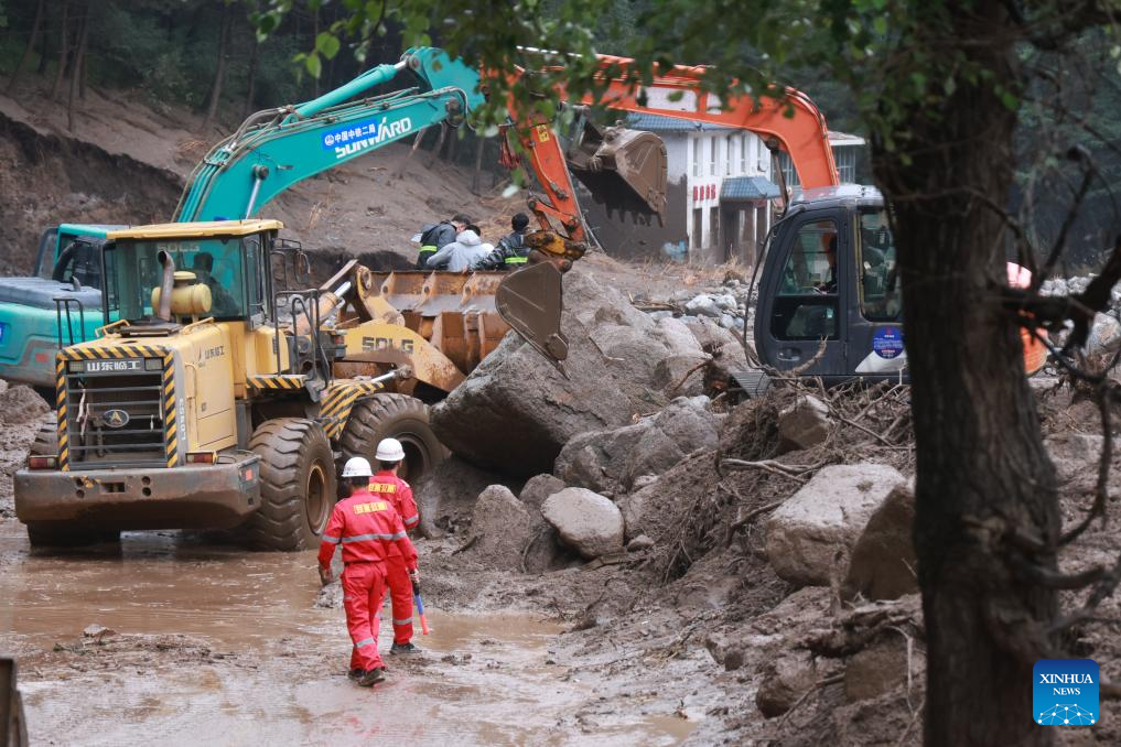 Por volta das 14h de sexta-feira, repórteres da Xinhua testemunharam a água da enchente misturada com árvores arrancadas bloqueando estradas próximas à Escola Primária Xinglong, na vila de Chengguan, com acúmulo de lama superior a 30 centímetros em alguns trechos. Ao longo da estrada, muitos veículos estavam danificados, enquanto móveis dos andares térreos de algumas casas haviam sido arrastados até as portas das mesmas.