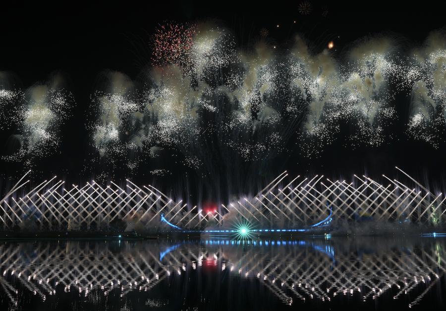 Fogos de artifício são vistos durante a cerimônia de abertura dos Jogos Mundiais 2025 em Chengdu, na Província de Sichuan, no sudoeste da China, em 7 de agosto de 2025. (Xinhua/Chen Yichen)