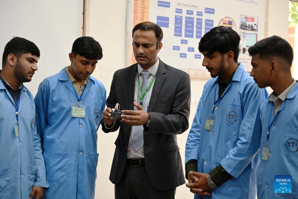 Islamabad, 11 ago (Xinhua) -- Na Oficina Luban, na cidade de Lahore, no leste do Paquistão, a paixão de Mughees Ahmed, 20 anos, por máquinas e sistemas era nítida enquanto ele passava pelos equipamentos, explicando com empolgação as operações e manuseio de cada um.