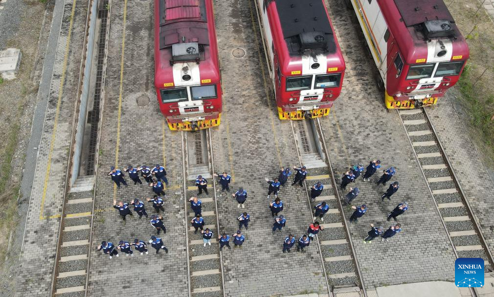 Trabalhadores ferroviários da China e do Quênia em frente às locomotivas formando o número "3000" para comemorar os 3.000 dias de operação segura da Ferrovia de Bitola Padrão Mombasa-Nairóbi no pátio de operação e manutenção de locomotivas da Africa Star Railway Operation Company Limited (Afristar) em Nairóbi, Quênia, em 19 de agosto de 2025. A Ferrovia de Bitola Padrão Mombasa-Nairóbi (SGR, na sigla em inglês), construída pela China, no Quênia, registrou 3.000 dias de operação segura até sábado, informou a Africa Star Railway Operation Company Limited (Afristar) em comunicado à imprensa no domingo. Desde seu lançamento em 31 de maio de 2017, a ferrovia transportou quase 15,93 milhões de passageiros e mais de 41,96 milhões de toneladas de carga, de acordo com a Afristar, que administra e mantém a linha. (Xinhua/Yang Guang)