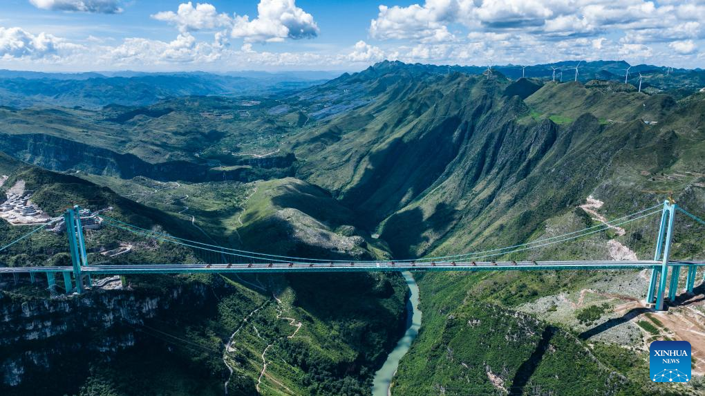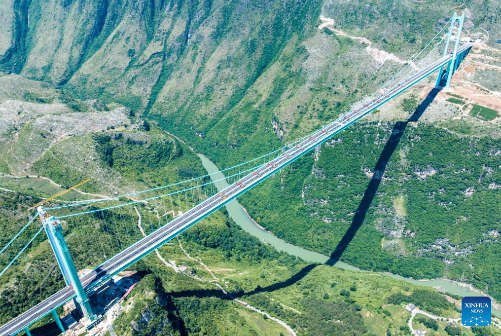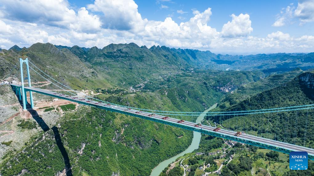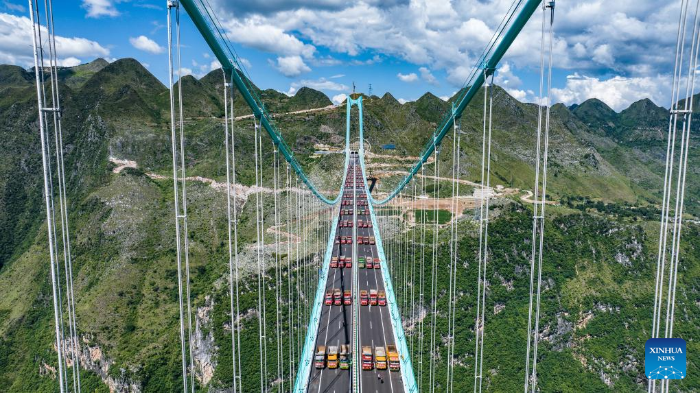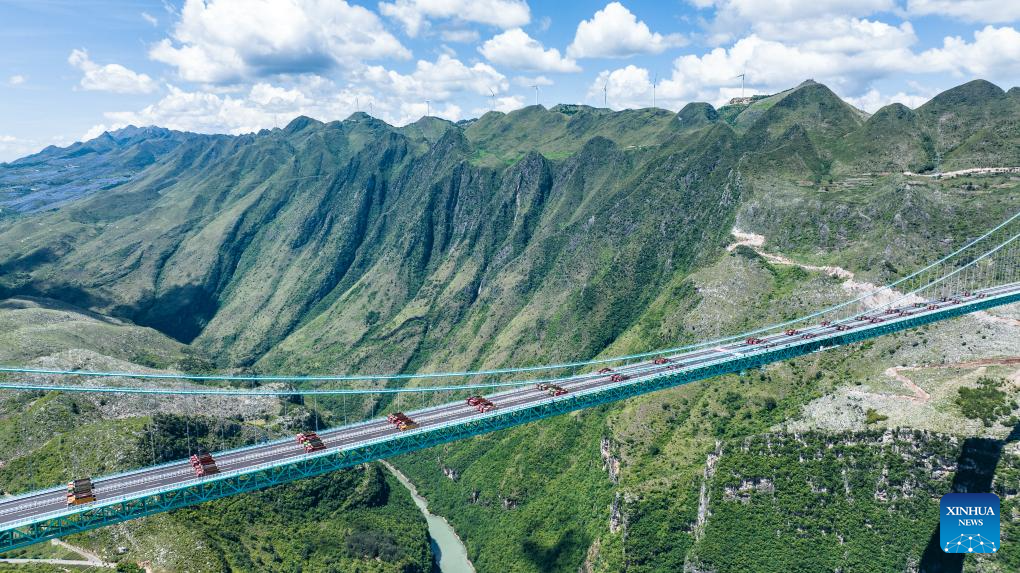 Guiyang, 25 ago (Xinhua) -- A Grande Ponte do Cânion Huajiang, na Província de Guizhou, no sudoeste da China, que será a ponte mais alta do mundo, concluiu um teste-chave de carga nesta segunda-feira, antecedendo a inauguração prevista para o final de setembro.