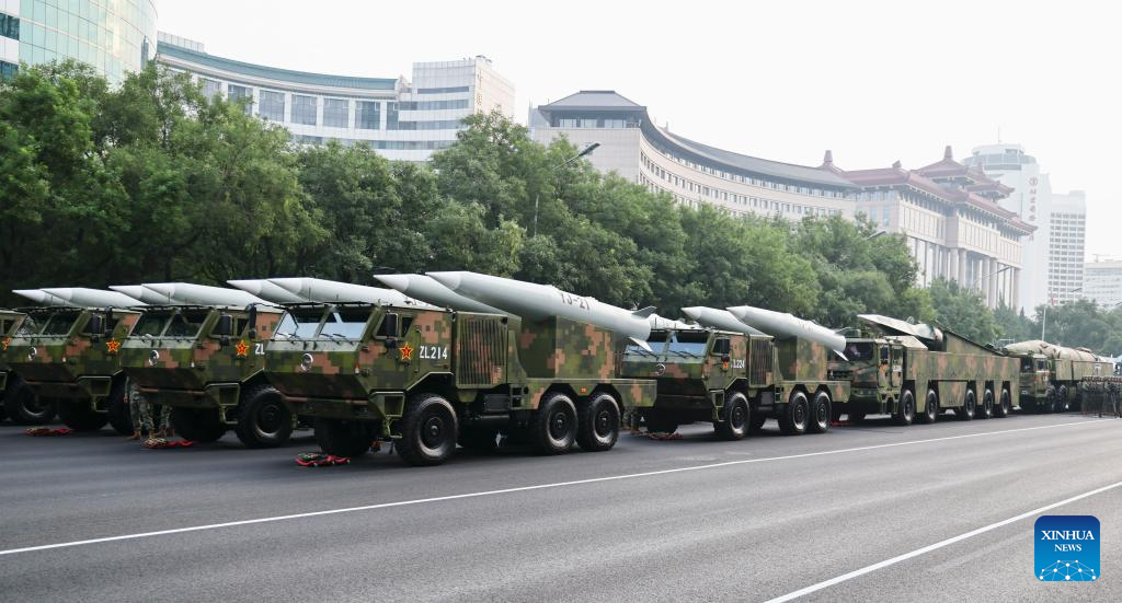 Beijing, 3 set (Xinhua) -- A China realizou um grande desfile militar no centro de Beijing nesta quarta-feira para marcar o 80º aniversário de sua vitória na Segunda Guerra Mundial, prometendo o compromisso do país com o desenvolvimento pacífico em um mundo ainda repleto de turbulências e incertezas.