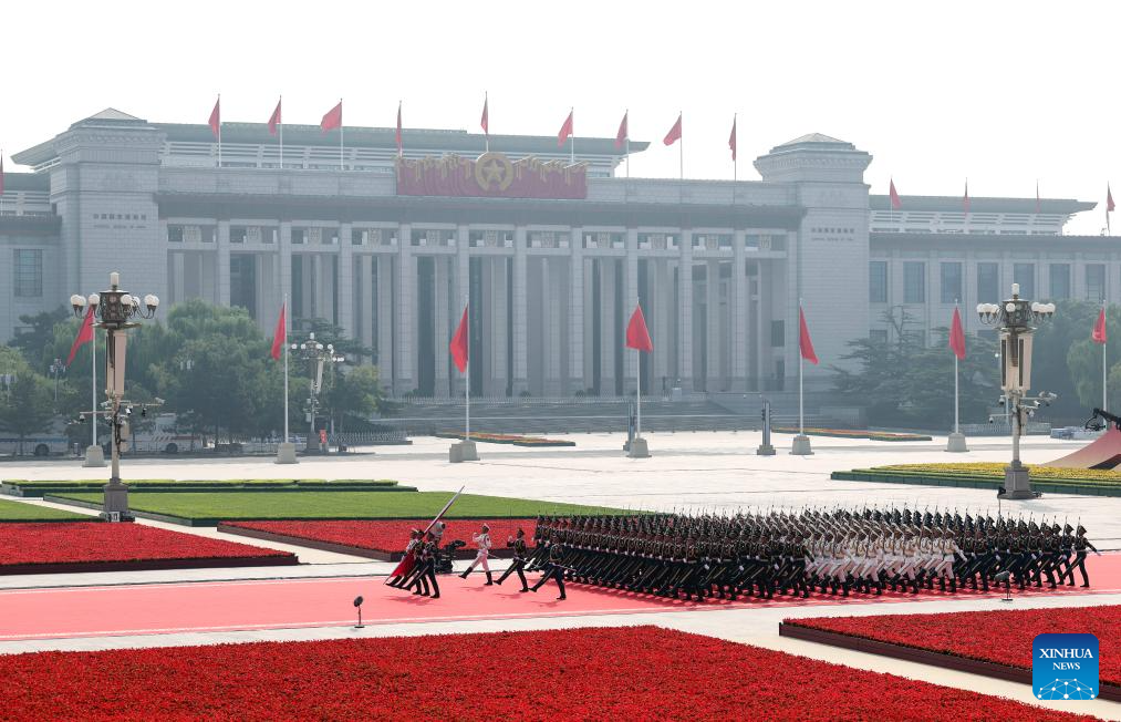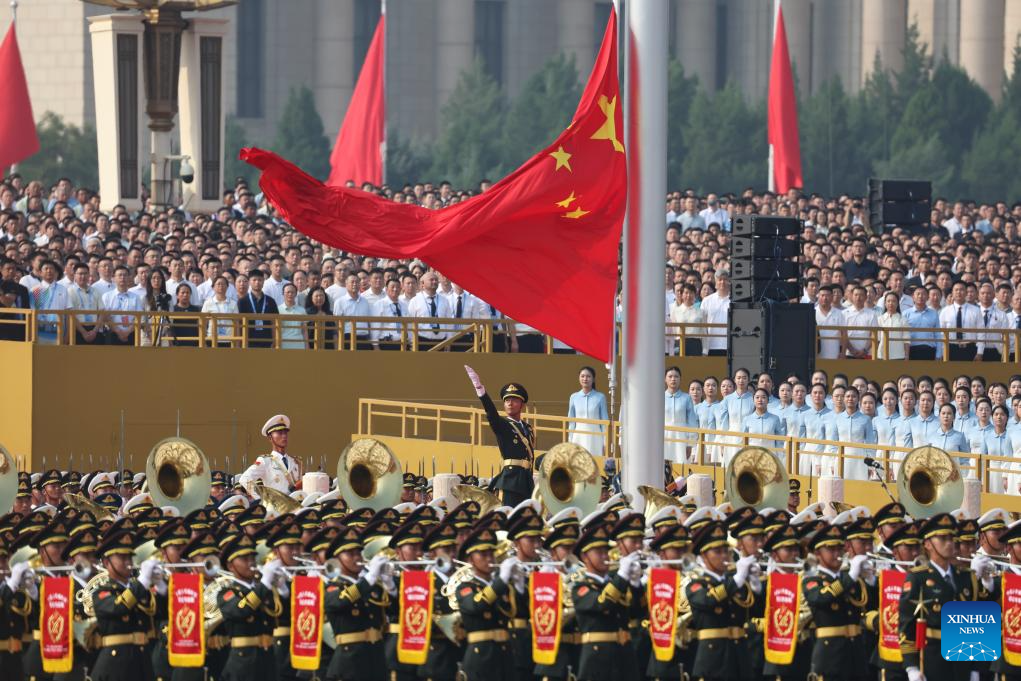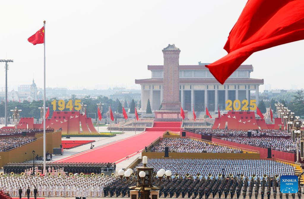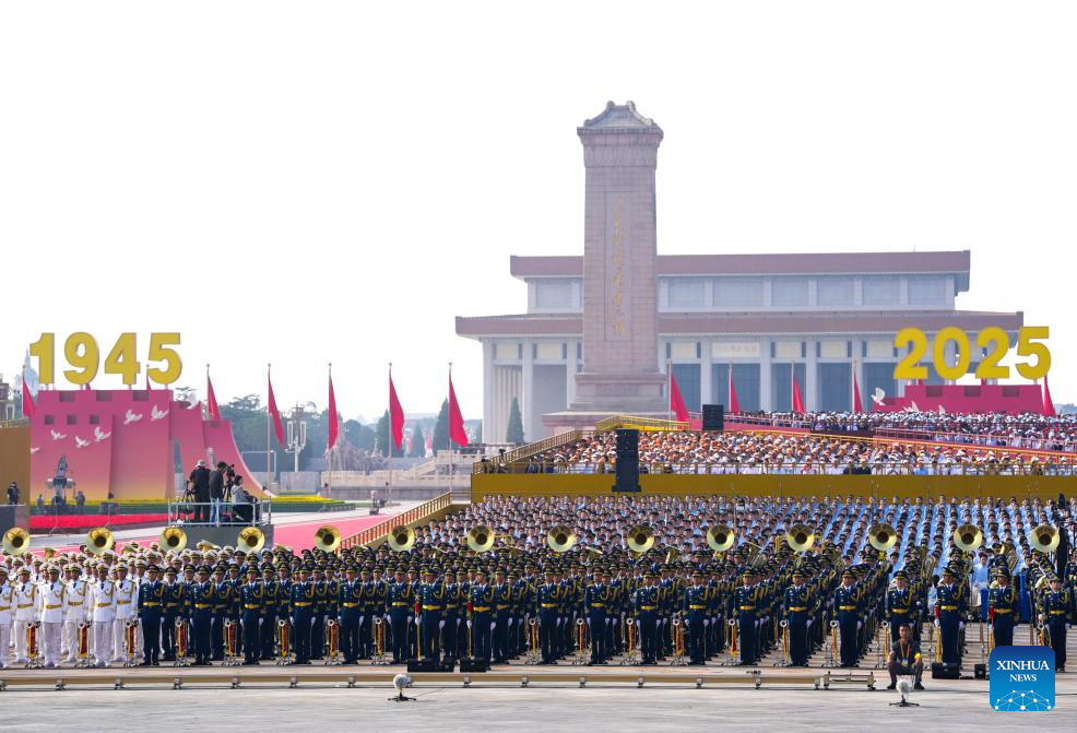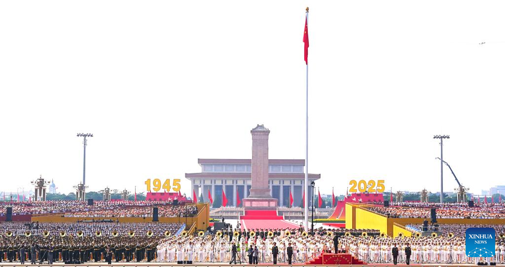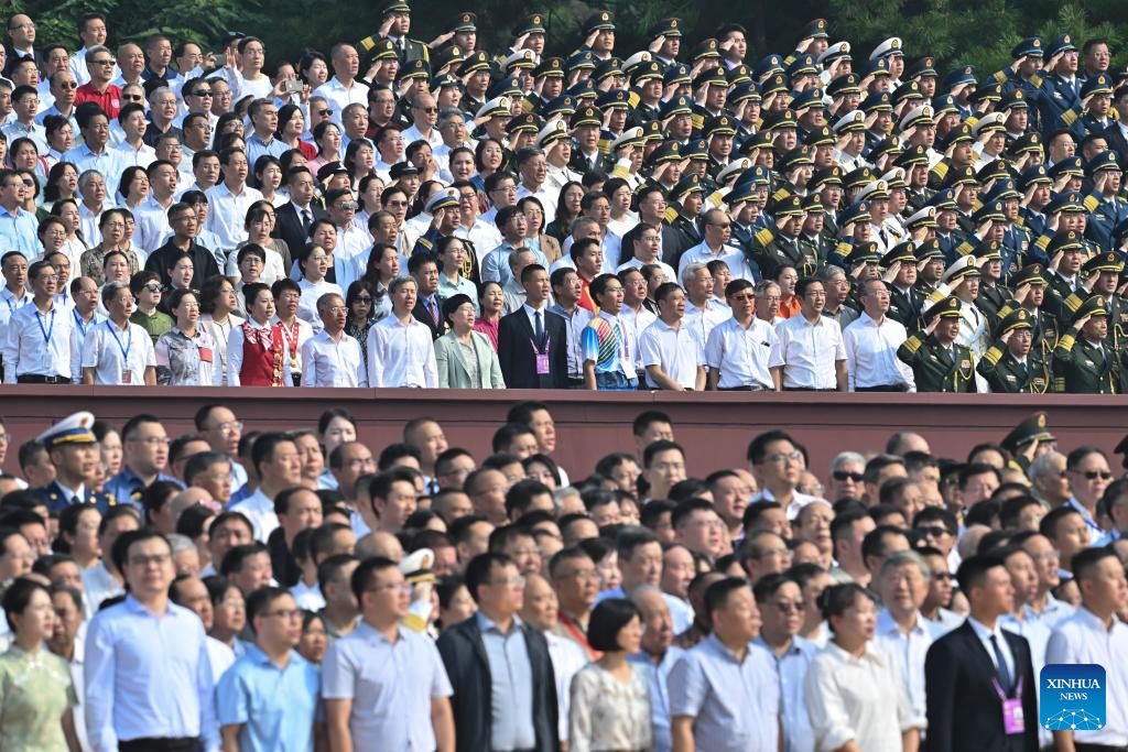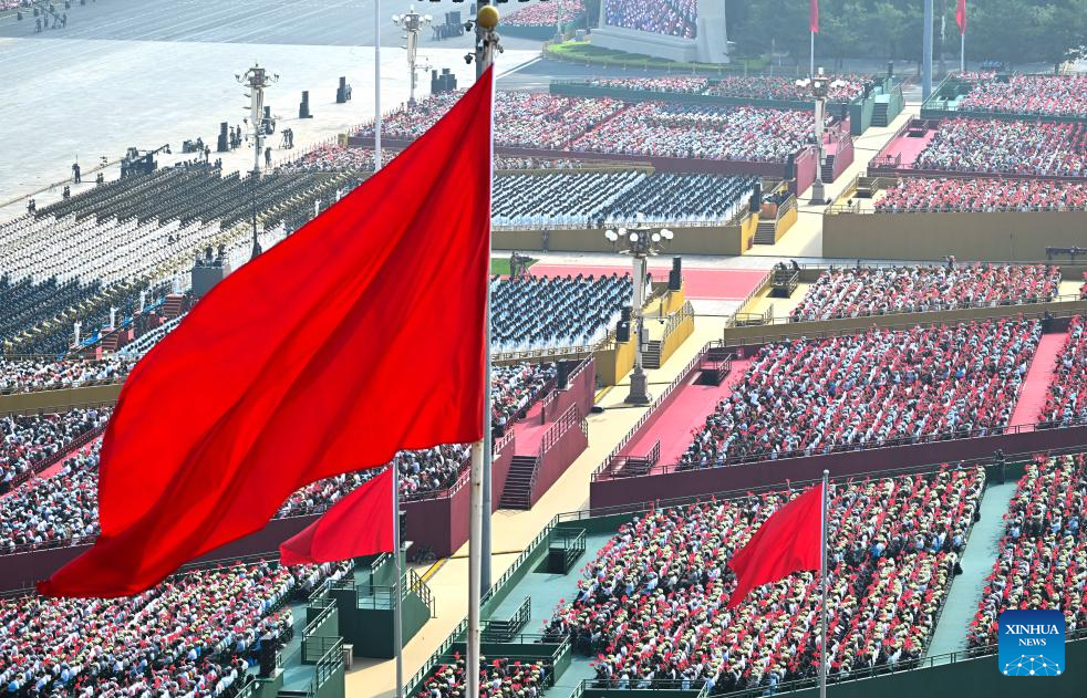 Beijing, 3 set (Xinhua) -- Uma grande reunião comemorativa teve início na manhã desta quarta-feira, na Praça Tian'anmen, em Beijing, para marcar o 80º aniversário da vitória na Guerra de Resistência do Povo Chinês contra a Agressão Japonesa e na Guerra Antifascista Mundial.