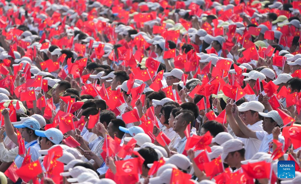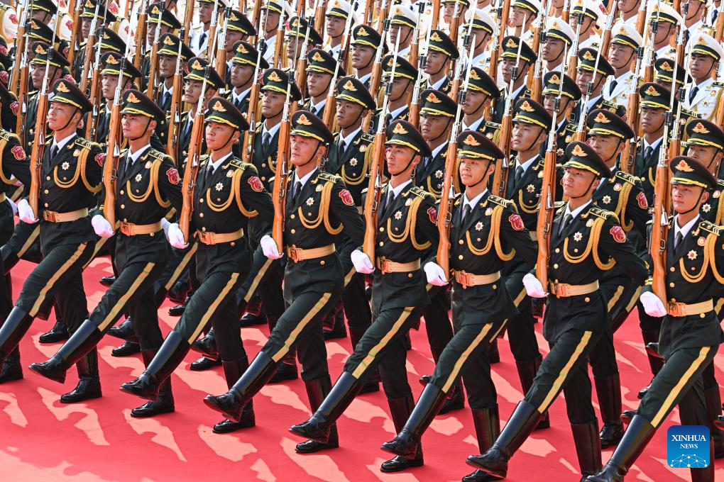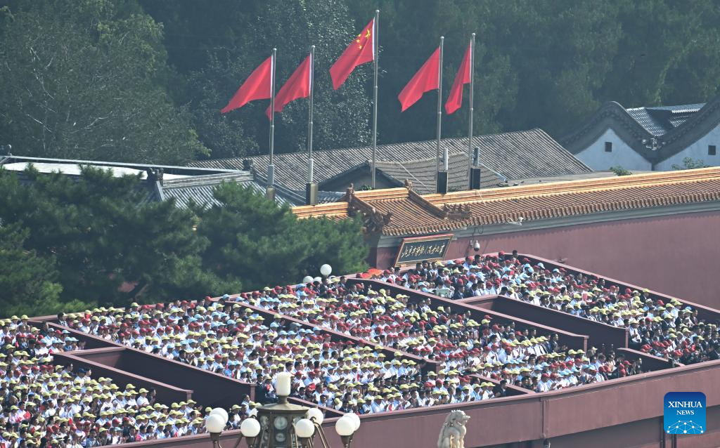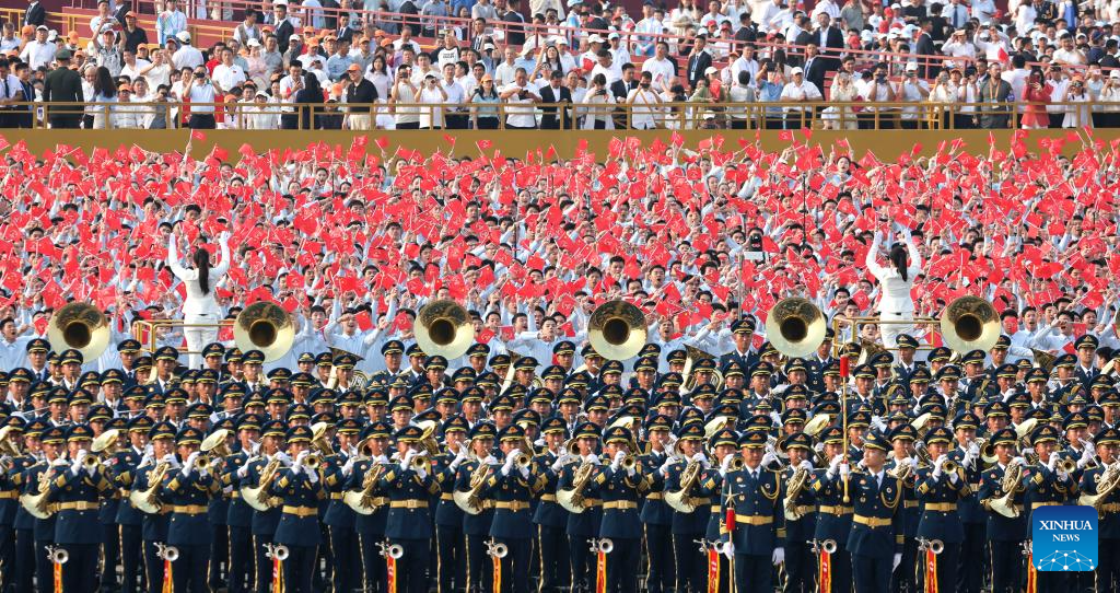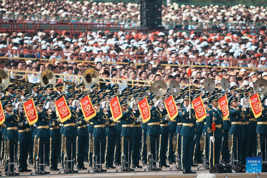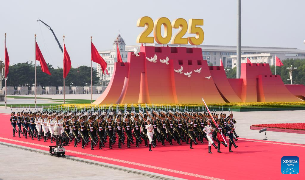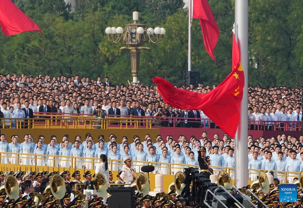 Beijing, 3 set (Xinhua) -- Uma grande reunião comemorativa teve início na manhã desta quarta-feira, na Praça Tian'anmen, em Beijing, para marcar o 80º aniversário da vitória na Guerra de Resistência do Povo Chinês contra a Agressão Japonesa e na Guerra Antifascista Mundial.