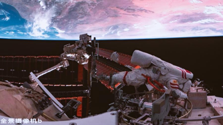 Chen Zhongrui e Wang Jie, encarregados de conduzir as operações de caminhada espacial, concluíram a instalação de dispositivos de proteção contra detritos espaciais e a inspeção de equipamentos externos, informou a CMSA.