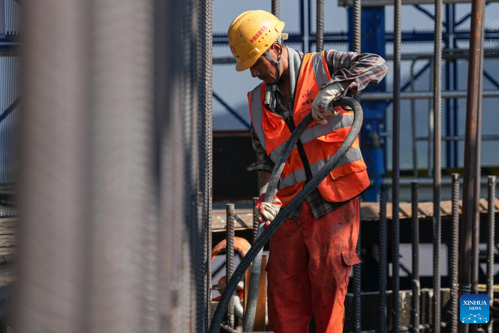 Concluída com sucesso a construção da torre principal da ponte rodoferroviária de Taoyaomen-Xinhua
