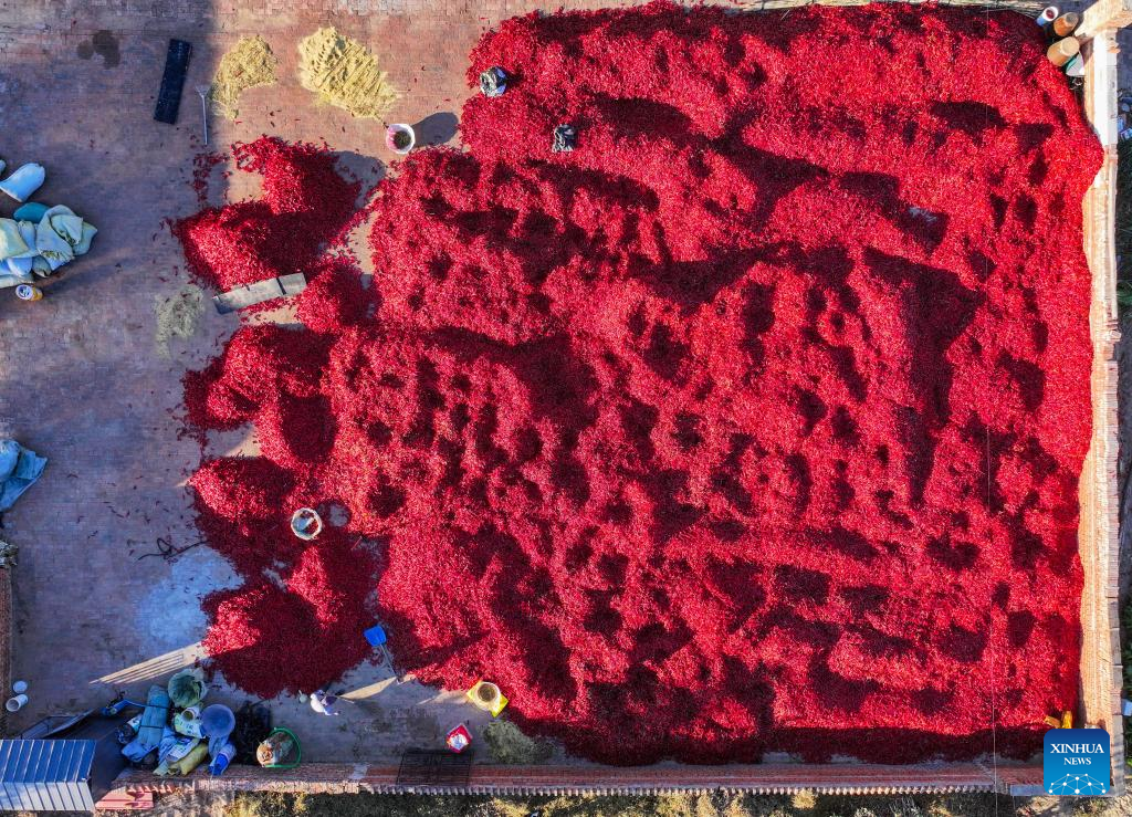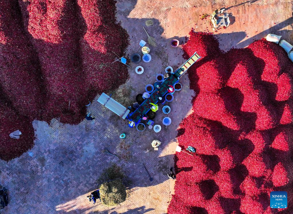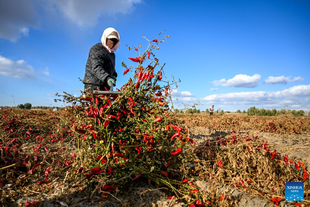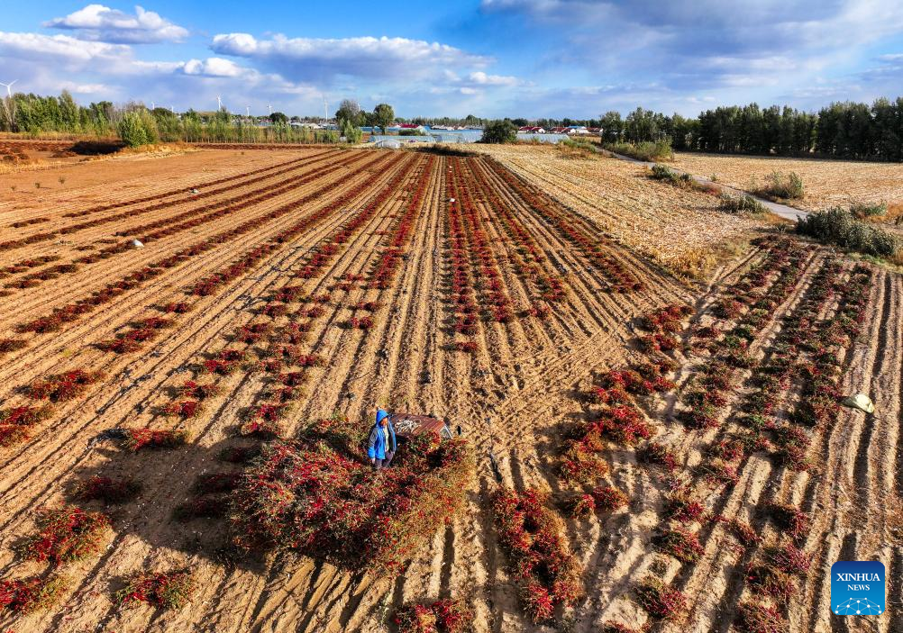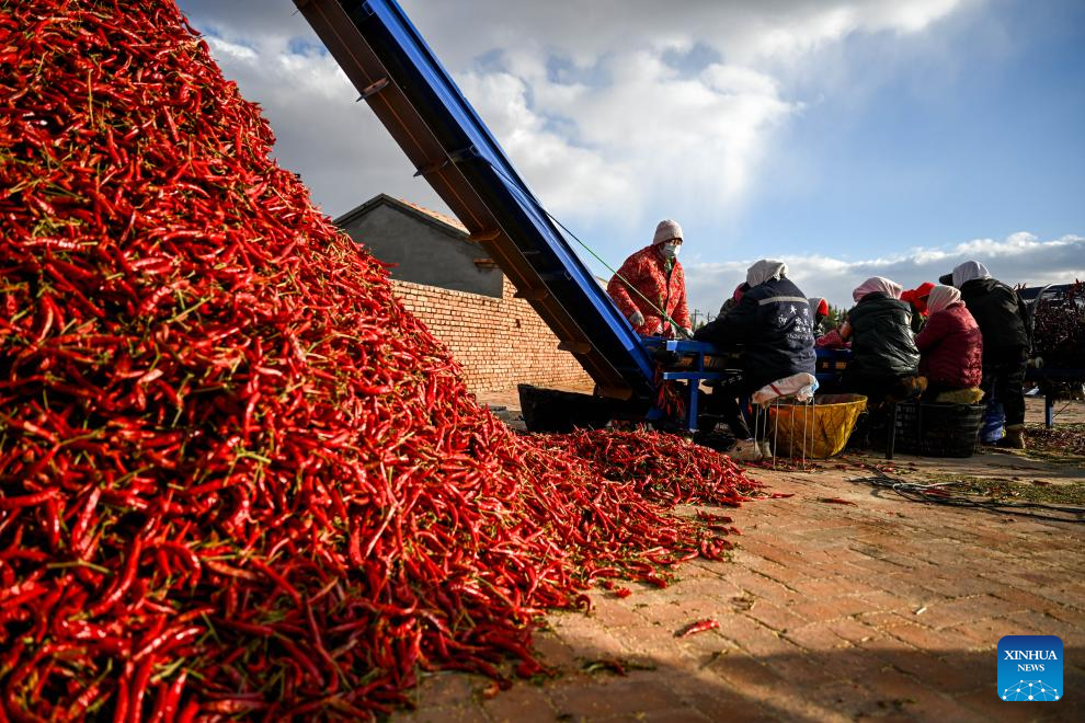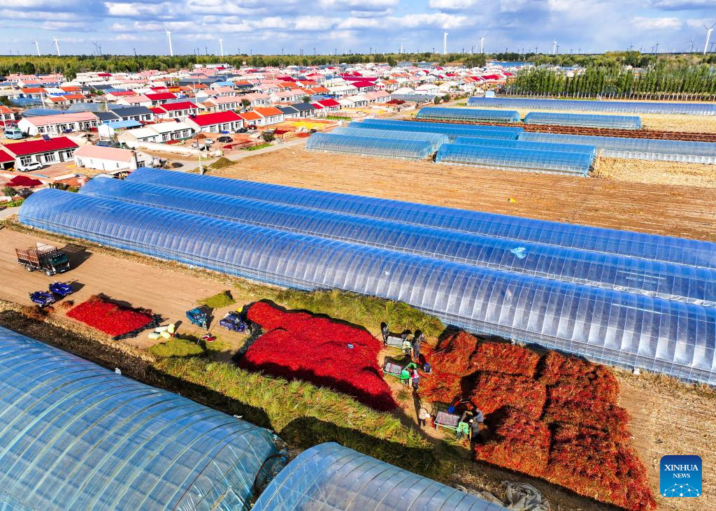 Produtores iniciam temporada de colheita de pimentas na Cidade de Tongliao, na Mongólia Interior, norte da China-Xinhua