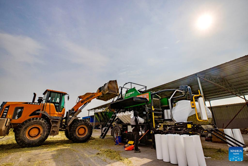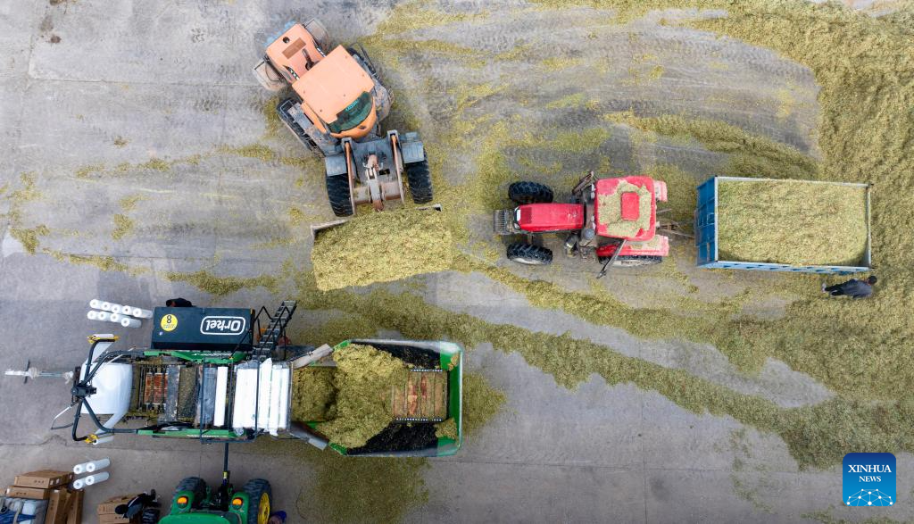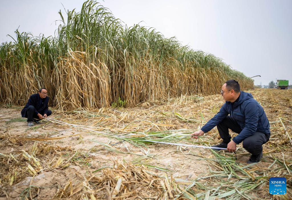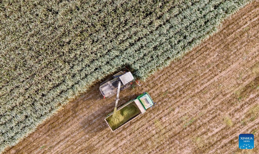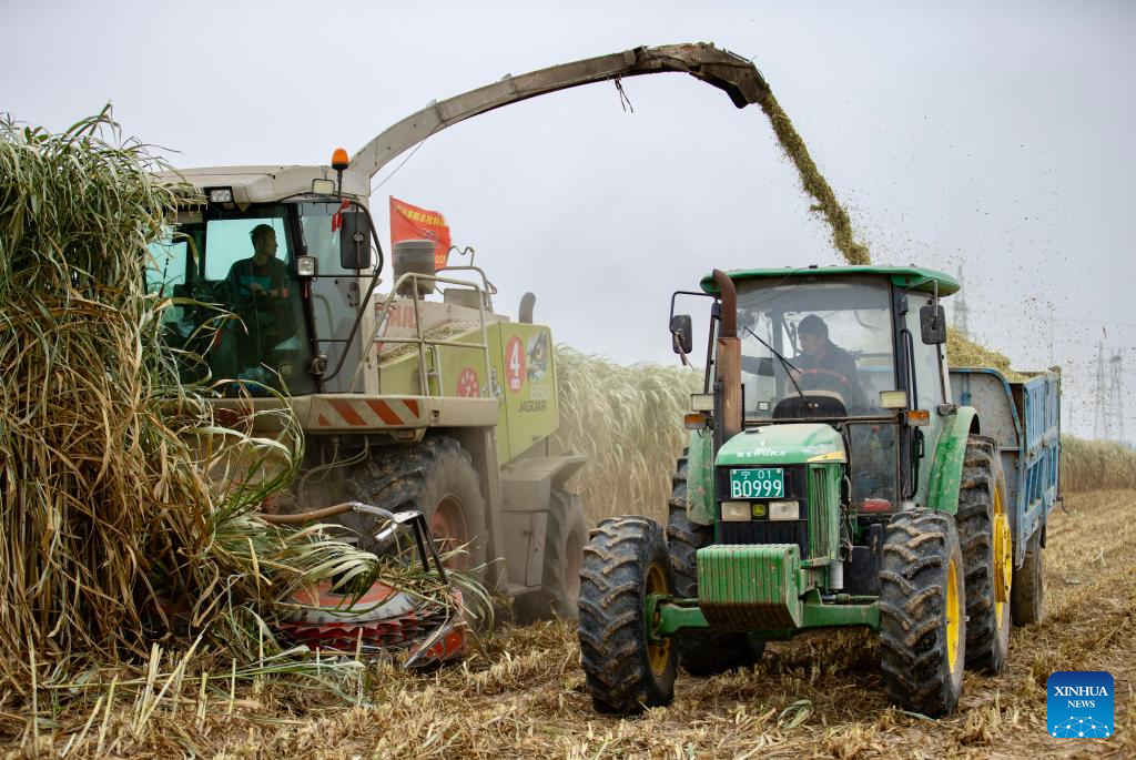 Agricultores colhem Juncao gigante na Vila de Minning, em Ningxia-Xinhua