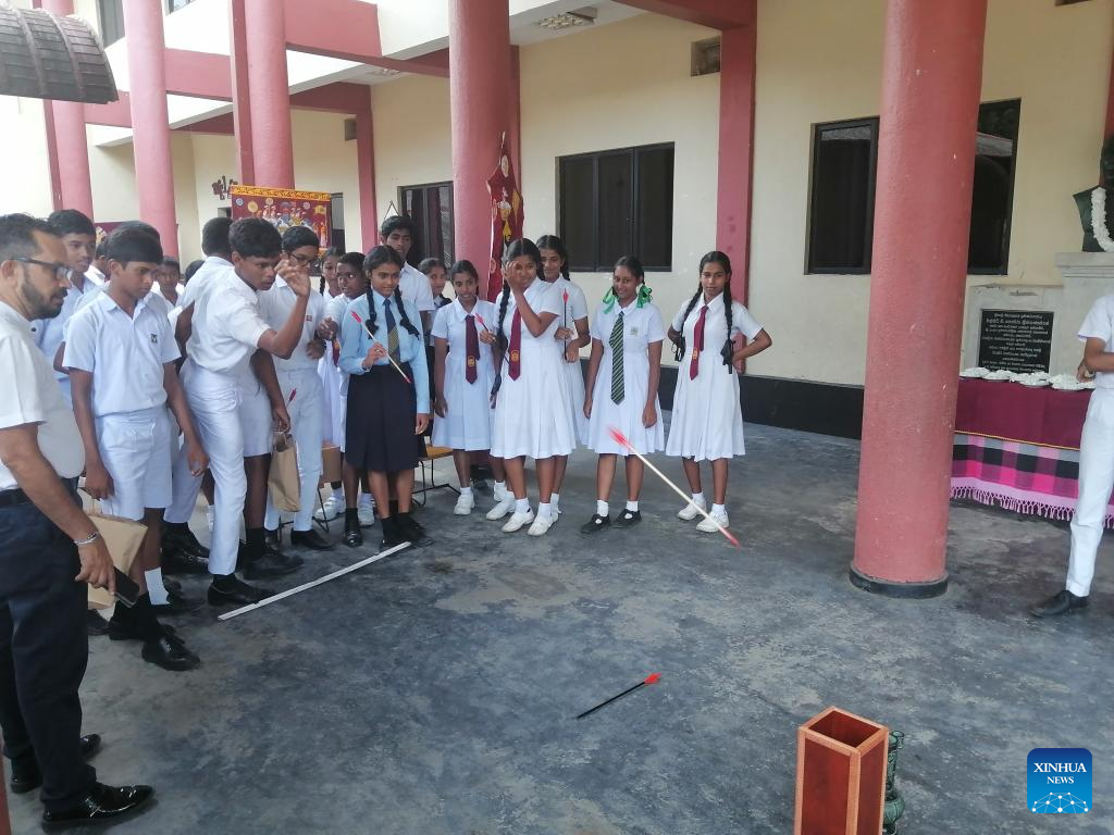 Estudantes da Faculdade Sri Palee se divertem jogando Touhu, um jogo tradicional chinês também conhecido como arremesso de potes, durante palestra com o tema "Eu e a China" em Horana, Sri Lanka, em 30 de outubro de 2025. A sétima edição da palestra com o tema "Eu e a China" foi realizada na quinta-feira na Faculdade Sri Palee em Horana, Sri Lanka, com a presença de mais de 170 convidados, incluindo estudantes e professores da faculdade. (Xinhua/Wu Ziyu)