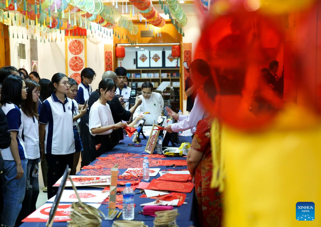 Os visitantes participaram de atividades como a criação chinesa de recortes de papel, pintura de máscaras da Ópera de Beijing e confecção de lanternas tradicionais de Mianmar.