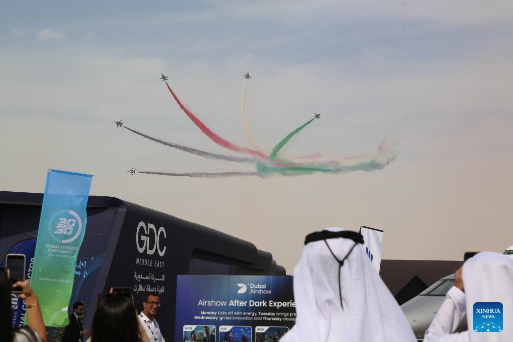 Dubai, 17 nov (Xinhua) -- A 19ª edição do Dubai Airshow começou na segunda-feira no Dubai World Central, apresentando a estreia no Oriente Médio de duas aeronaves C919, fabricadas na China.