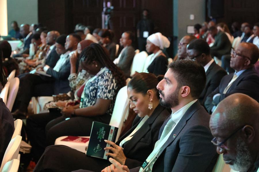 Convidados participam da Cúpula Africana em Acra, Gana, em 16 de dezembro de 2025. A primeira Cúpula Africana, com o tema "Construindo uma Nova África Unida", começou na terça-feira em Acra, capital de Gana, reunindo formuladores de políticas e partes interessadas de todo o continente para construir um consenso sobre uma África mais integrada, interdependente e interconectada. (Xinhua/Gao Jianfei)